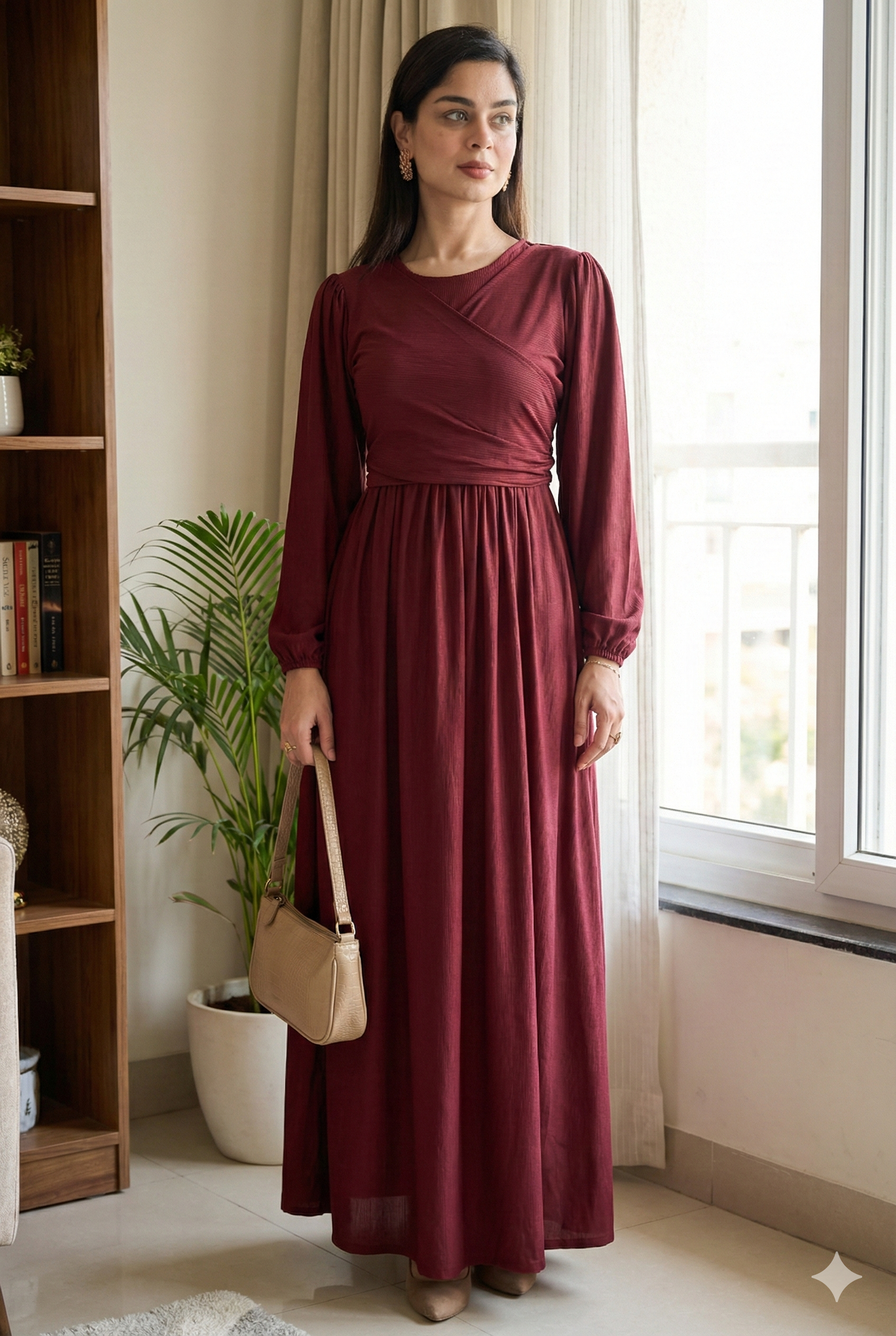 ✔ Long Balloon Sleeves – Adds a graceful and feminine touch