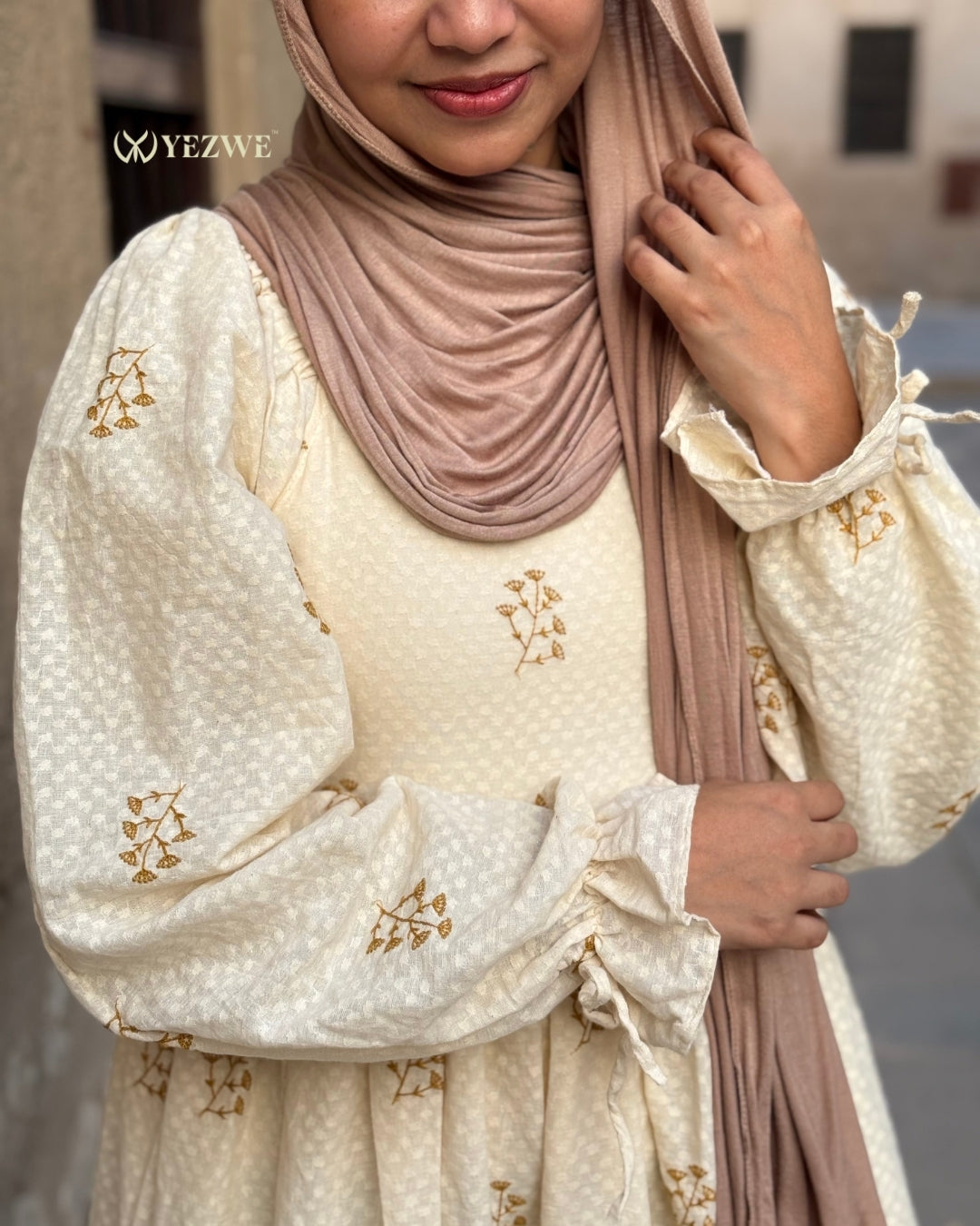 Crafted to feel light and breathable on the skin, the fabric moves freely with the body, offering an elegant fall without clinging. Ideal for Indian weather, it keeps you comfortable even through warm and humid days. The relaxed fit allows easy movement while maintaining full modest coverage, making it a go-to choice for long wear, prayer-friendly outings, and calm everyday styling. Pair it with a soft hijab or minimal accessories to let the embroidery and silhouette speak for themselves.